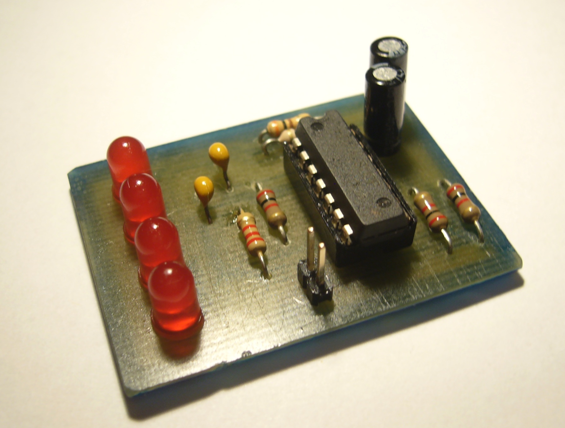 Po zmontowaniu powstał mały układ z migającymi naprzemiennie diodami.