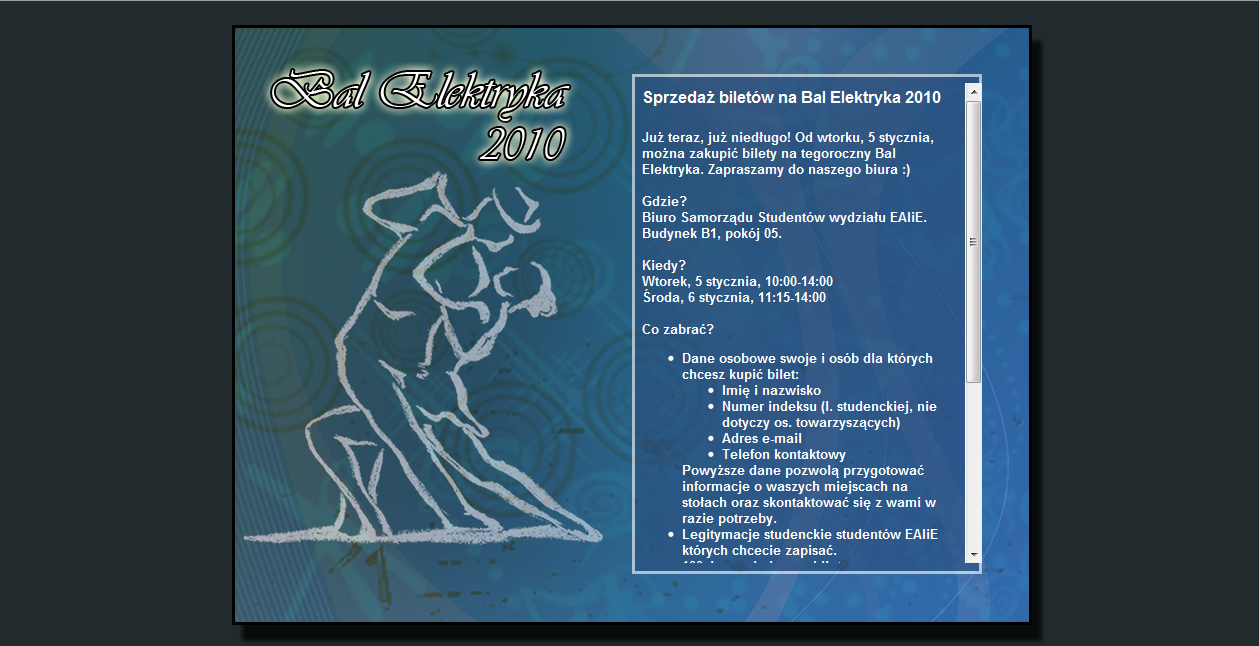 System sprzedaży biletów na Bal Elektryka 2010