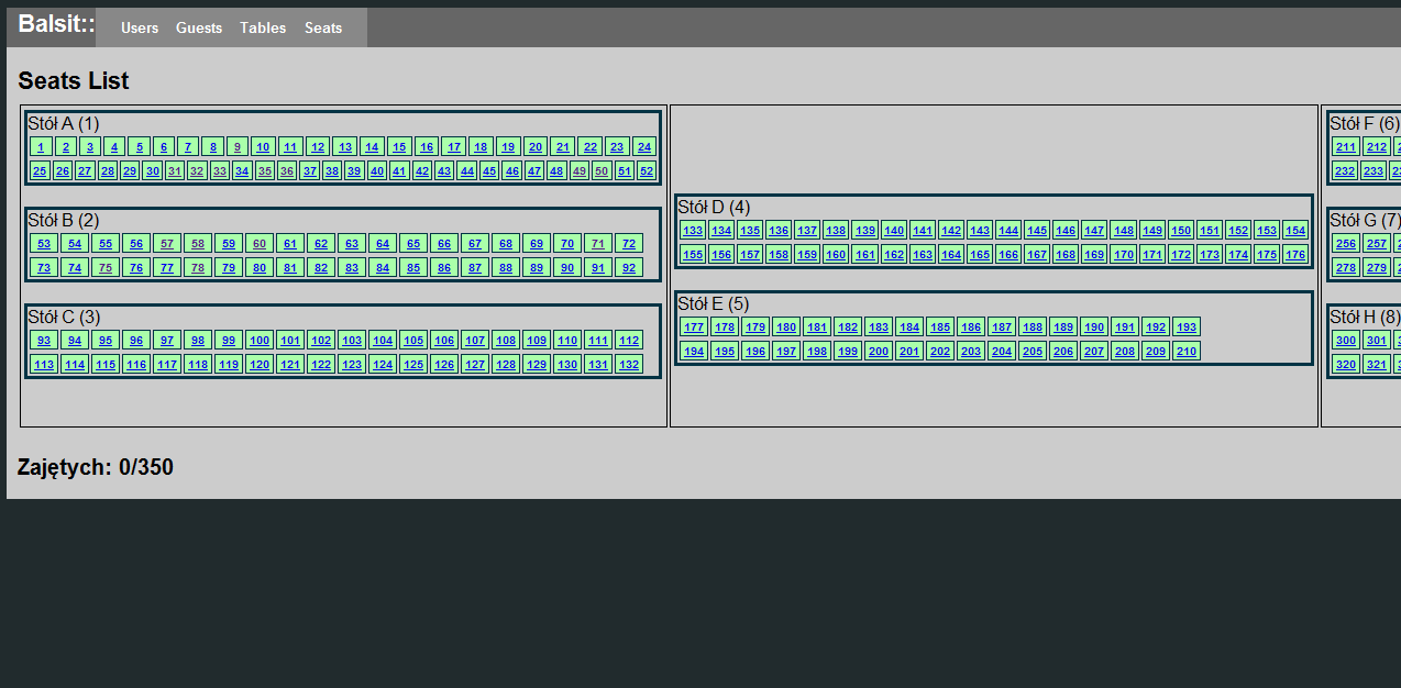 System składa się z front-endu do rejestracji gości - każdy chcący kupić bilet rejestrował się na komputerze, członek naszego samorządu sprawdzał poprawność wpisanych danych. Użytkownik otrzymywał unikalny numer, potrzebny zaraz przy następnym stanowisku.